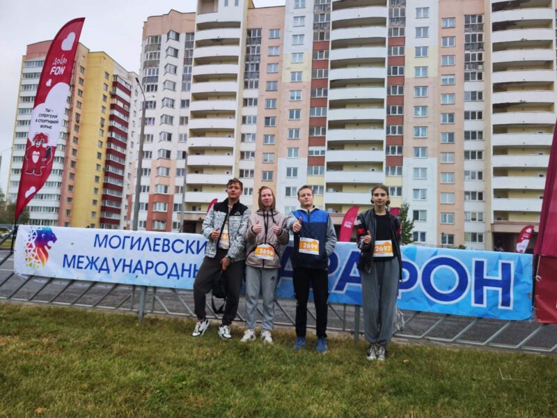28 сентября наряду с профессионалами попробовали свои силы в беге наша команда педагогов и учащихся, достойно преодолев дистанцию в 3 км. Могилевского международного марафона.