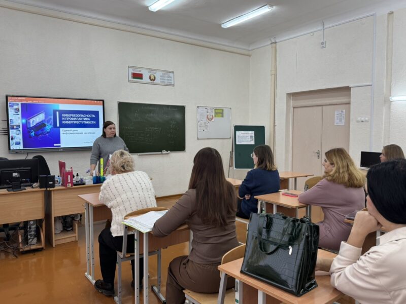 КИУП «Информационное агентство „Могилевские ведомости“», которая рассказала и обсудила с трудовым коллективом школы вопросы принятия дополнительных мер по обеспечению кибербезопасности, основные правила безопасности и профилактические действия против киберпреступности#единыйденьинформирования#кибербезопамность