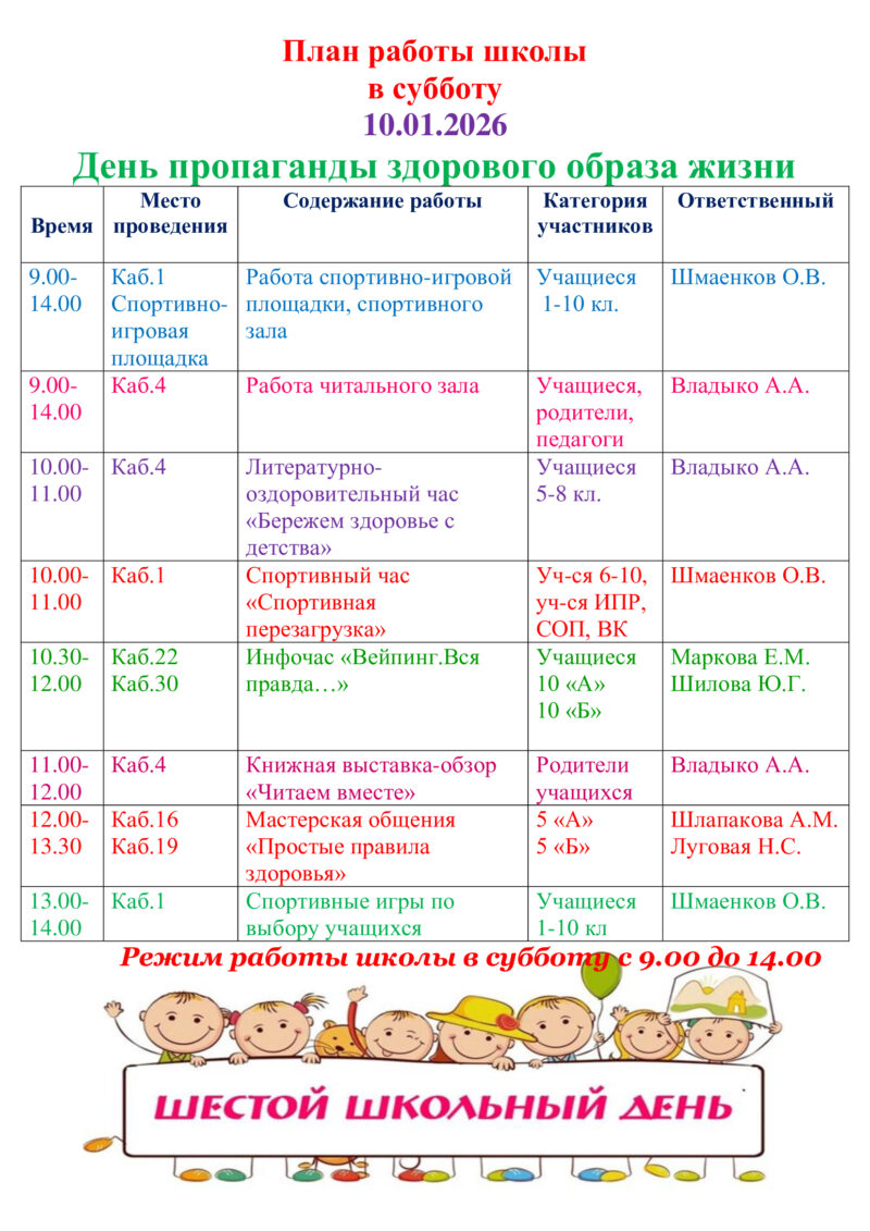 Анонс шестого школьного дня на 10.01.2026