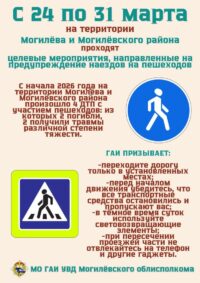 На страже вашей безопасности: Госавтоинспекция Могилёва усиливает контроль С 24 по 31 марта ГАИ проводит целевые мероприятия по профилактике ДТП с участием уязвимых участников дорожного движения. Наша общая цель – сделать дороги безопаснее для каждого. 5 правил для пешеходов: -убедитесь, что вас видят! Переходите дорогу только по «зебре». Начинайте движение, лишь когда все авто остановились, а водители вас пропускают; -снимите наушники. Музыка и телефонные разговоры «отключают» вас от реальности. На дороге нужно слышать все; -улучшите обзор. В дождь обязательно приподнимайте…
