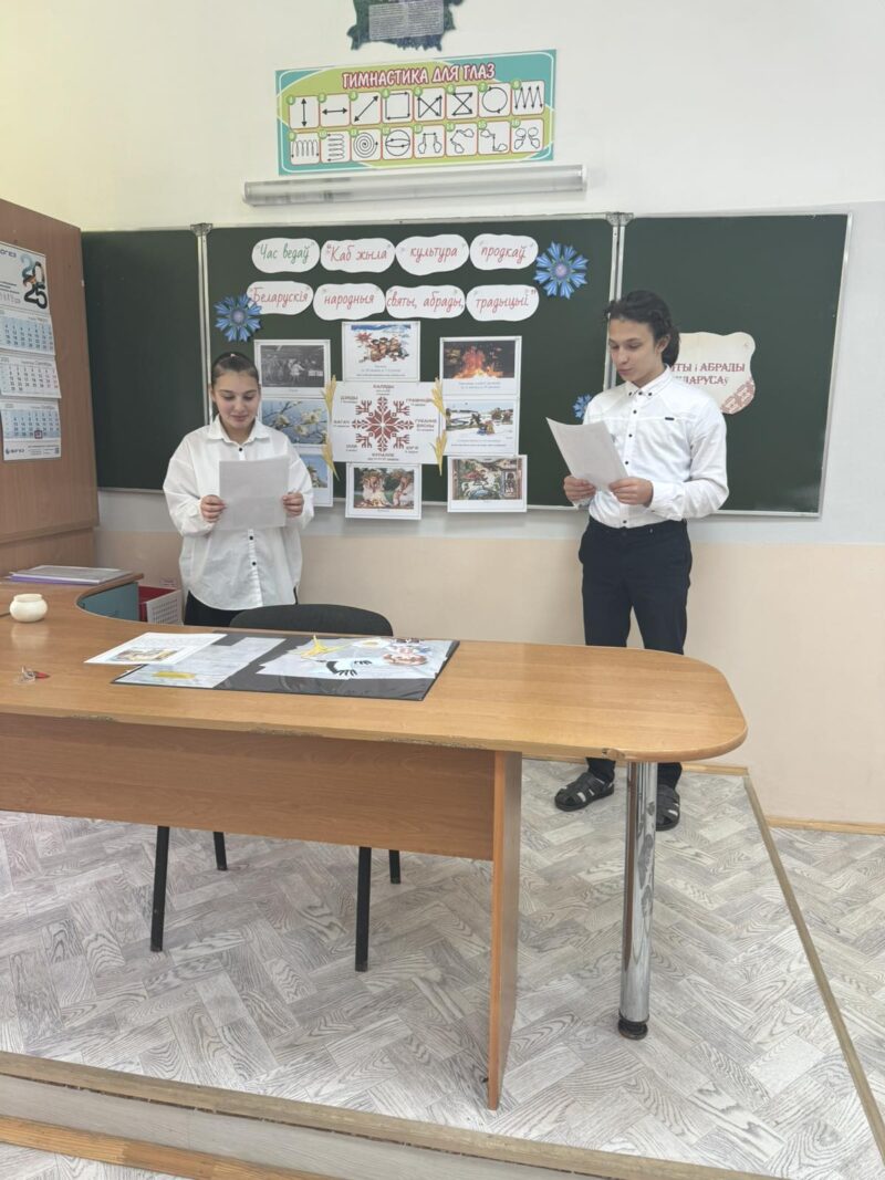 Вучнi з задавальненнем гулялi ў народыня гульнi «Залатыя вароты», «Масленiчны блiн», «На кiрмашы-усё ад душы». Слухалi народныя песнi «Купалiнка», «На Купалу рана сонца ўстала». Рабiлi выставу малюнкаў на тэму «Масленiца запрашае!»