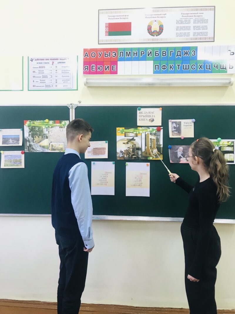 Пачаўся новы вучэбны год і мы зноў працягваем праводзіць, стаўшыя ўжо традыцыйнымі, “Моўныя хвілінкі”. Так, 7 верасня 2023 года, у 9″А” класе прайшоў інформ-дайджэст прысвечаны Дню беларускага пісьменства, які адзначаецца ў першую нядзелю верасня. На гэтым мерапрыемстве вучні ўспомнілі асветнікаў беларускай мовы. Даведаліся, што ў гэтым годзе святу споўнілася 30 год, а адзначалі яго ў г.Гарадок Віцебскай вобласці. Пад час мерапрыемства пазнаёміліся с біяграфіяй Ефрасіні Полацкай, праглядзелі відэа-ролік пра жыццё і дзейнасць беларускага “Златавуста” Кірыла Тураўскага, а таксама даведаліся, што ў Нацыянальным гістарычным музеі Рэспублікі Беларусь у г. Мінск, на выставе “Таямніцы беларусскай пісьменнасці”, да 1 кастрычніка можна пазнаёміцца з пісьмовымі прыстасаваннямі гістарычназначных, знакамітых людзей Беларусі. У канцы мерапрыемства, разам з вучнямі, абмеркавалі важнасць ведання гісторыі беларускай пісьменнасці і яе значнасці ў нацыянальнай самасвядомасці.
