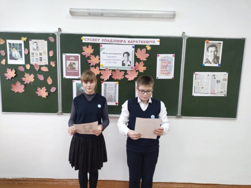 20 лістапада адбылася літаратурная гасцёўня “Сусвет Уладзіміра Караткевіча”, прысвечаная 95-годдзю з дня нараджэння беларускага пісьменніка Уладзіміра Караткевіча. На мерапрыемстве была прадстаўлена выстава кніг, фотаздымкі, ілюстрацыі да твораў Уладзіміра Караткевіча. Вучні пазнаёміліся з біяграфіяй пісьменніка. Віртуальная экскурсія дазволіла павандраваць па родных мясцінах беларускага класіка. У выніку атрымаўся эмацыйны дыялог, які не толькі ўшаноўвае мінулае, але і закладвае моцную аснову для чытання твораў Уладзіміра Караткевіча ў будучыні. Гэта магчымасць яшчэ раз пераканацца: Караткевіч – гэта не толькі наша гісторыя, але і наша сучаснасць.