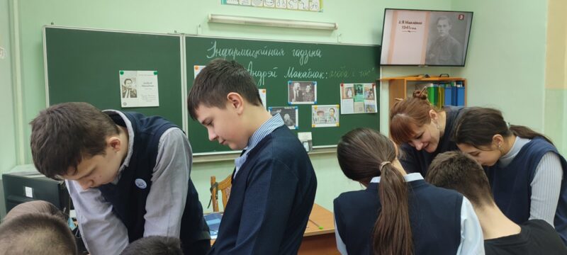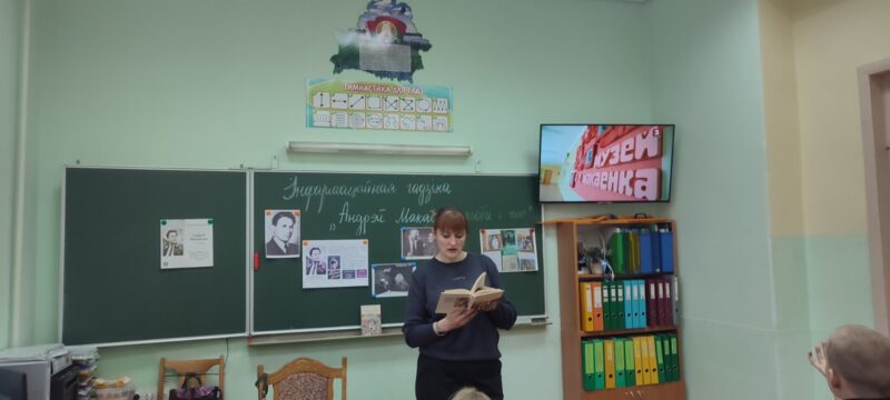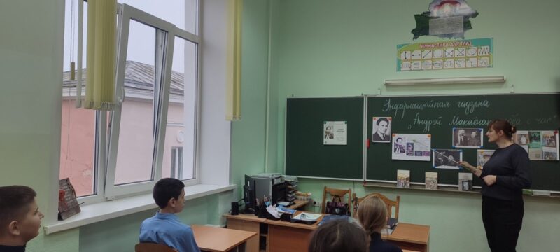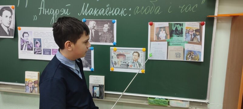 Пад час мерапрыемства вучні пазнаёміліся з біяграфіяй і творчасцю пісьменніка, з вялікім задавальненнем паглядзелі відэа-ролік, прысвечаны Андрэю Макаёнку, а таксама па-ралях зачыталі ўрывак з п’есы “Зацюканы апостал”