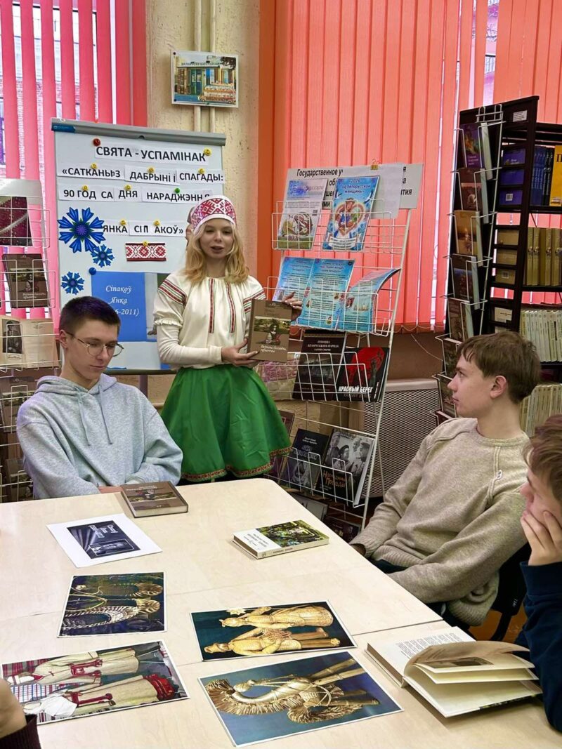 У рамках папулярызыцыі беларускай мовы 22 студзеня ў 10 «А» класе прайло Свята-успамiнак «Сатканы» з дабрынi i спагады: Янка Сiпакоў», прысвечанае 90-годдзю з дня нараджэння. Навучэнцы з вялiкай цiкавасцю пастваiлiся да жыццёвага шляху i творчасцi паэта i пiсьменнiка. Дзецi падрыхтавалi кароткiя апавяданнi пра цiкавыя факты з жыцця Янкi Сiпакова. З задавальненнем прымалi ўдзел у конкурсе выразнага чытання вершаў, слухалi творы паэта з аўдыякнiгi. Пазнаёмўушыся са зборнiкамi Сiпакова, на выставе кнiг, дзецi вырашылi ўзяць iх у бiблiятэцы дадому. Напрыканцы мерапрыемсва, навучэнцы слухалi песню «Твае рукi» на словы паэта, у выкананнi ВIА «Песняры». Мерапрыемства атрымалася цiкавым i спадабалася вучням.