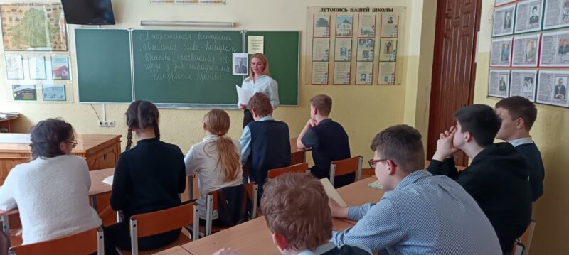 12 сакавіка 2026 г. у 7″А” класе прайшла літаратурная віктарына ” Майстар слова – Кандрат Крапіва “, прысвечаная 130-годдзю з дня нараджэння Кандрата Крапівы. Вучні пазнаёміліся з біяграфіяй пісьменніка. Чыталі яго вершы, байкі. Актыўна ўдзельнічалі ў віктарыне.